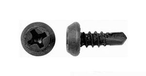 Изготовлен из стали, поверхность оцинкована или оксидирована. Наконечник острый, головка имеет форму цилиндра, шлиц крестообразный Phillips №2
