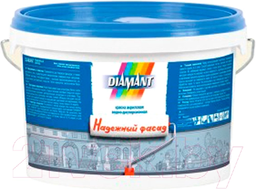 Diamant Фасад - водно-дисперсионная акриловая краска предназначена для покраски фасадов и отделки внутренних стен, подвергающихся высоким нагрузкам. Специальные свойства краски образуют атмосферостойкое, паропроницаемое покрытие устойчивое к истиранию. Через 4-6 часов высыхает на поверхности и готова к последующей обработке. Использование рекомендуется при температуре не ниже 5 С. Допускается нанесение комбинированным и безвоздушным распылением.