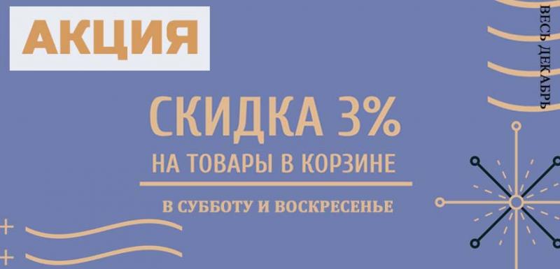 Весь Декабрь в субботу и воскресенье СКИДКА 3% на товары, заказанные через корзину в интернет-магазине!