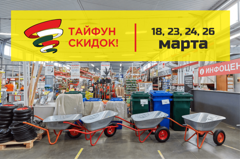 Строительное мероприятие в марте ТАЙФУН скидок в БУДНИ!